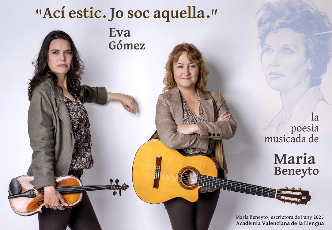 Des de gener de 2025 estic immersa en ACÍ ESTIC. JO SOC AQUELLA., poemes musicats de Maria Beneyto, escriptora de l’any per l’Acadèmia Valenciana de la Llengua. »