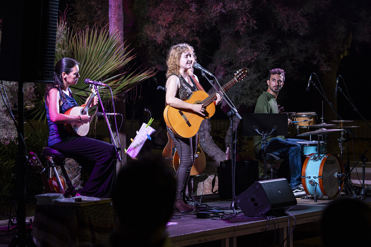 Foto del concert presentació a la Platja d’Almenara (28 de juliol de 2023) amb Laura Miñarro i Manel Chust