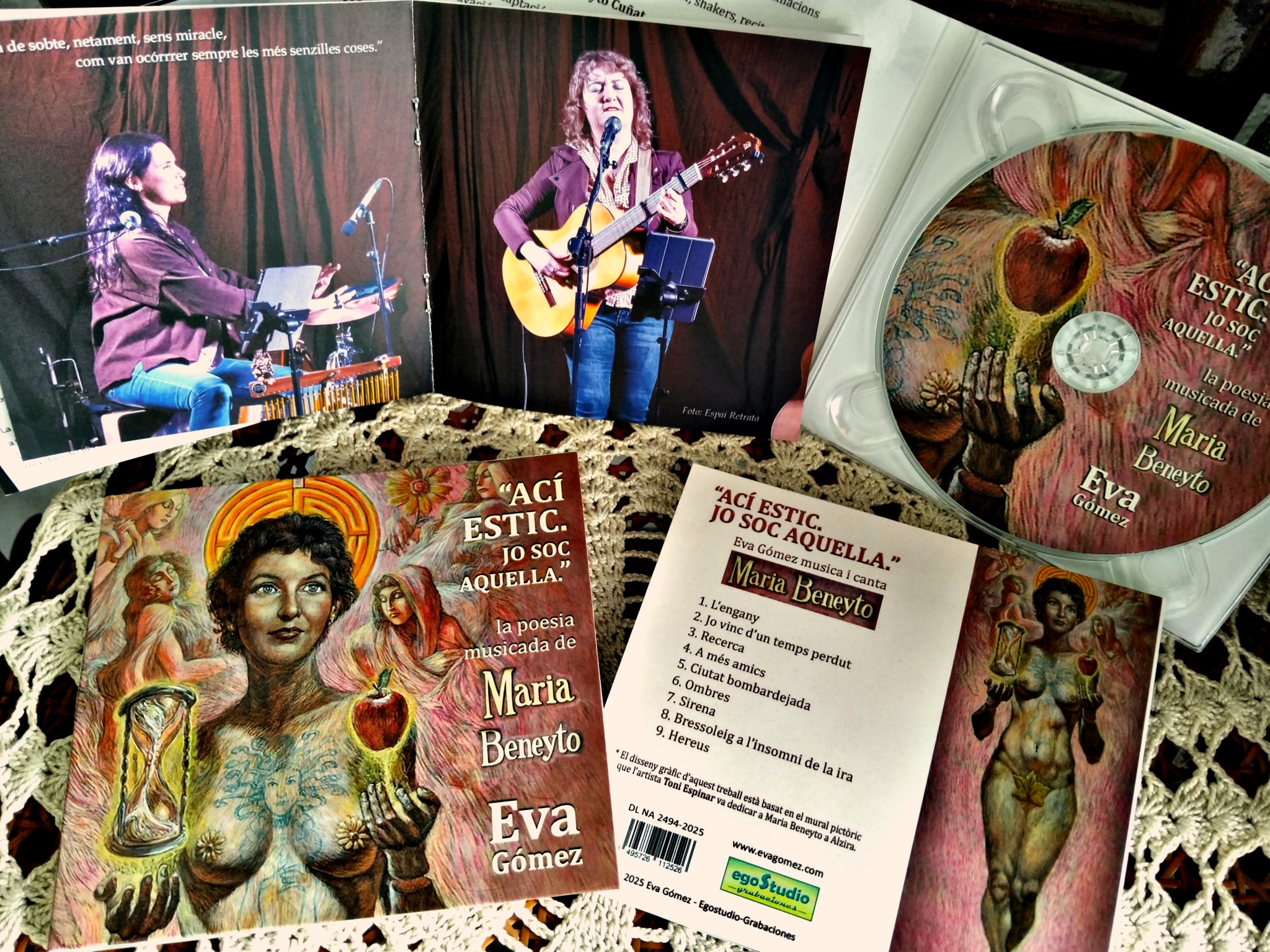 El nou disc de poemes musicats de Maria Beneyto ja és una realitat: nou poemes musicats i cantats per la cantautora Eva Gómez amb l’ajuda de la multinstrumentista Laura Miñarro a les cordes fregades i les percussions, a les recitacions que estan immerses a les cançons-poema i a la coproducció total del treball.